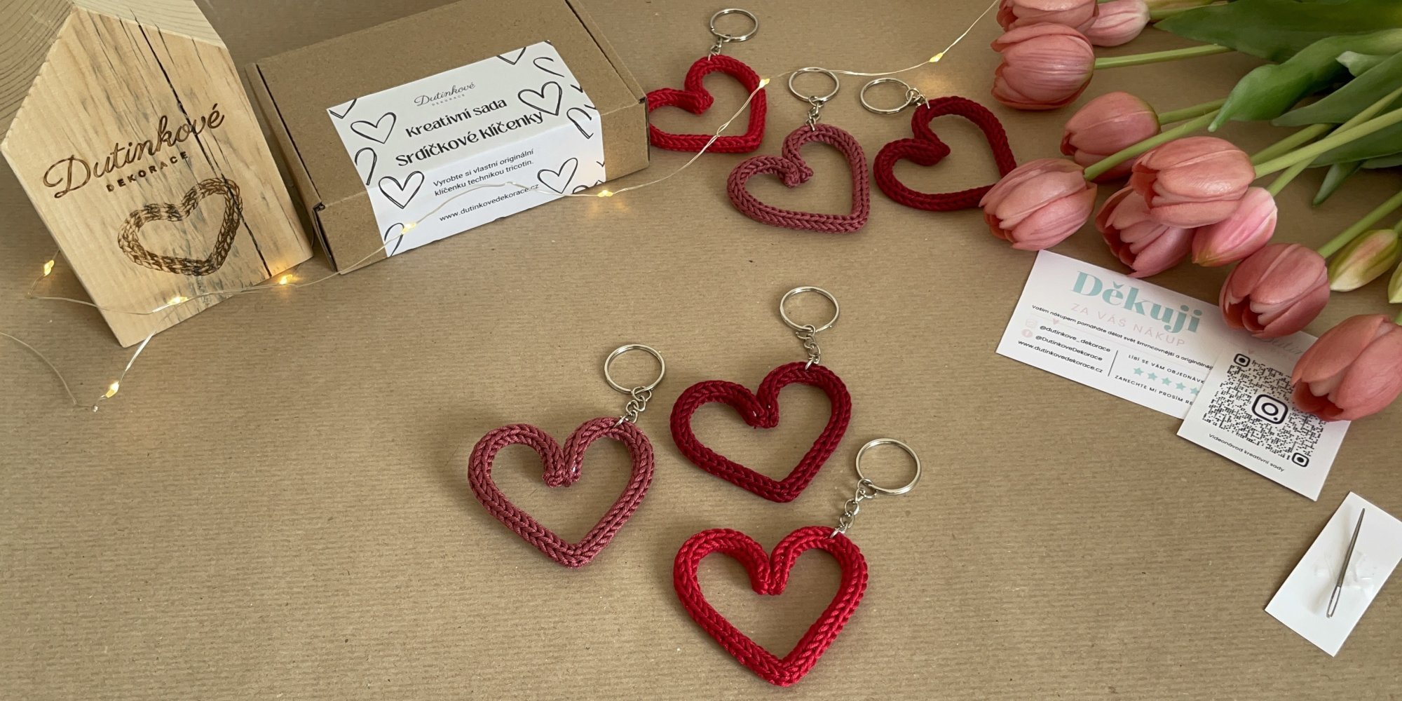 Díky této sadě si vyrobíte hned tři klíčenky v krásných červených odstínech! Ruční práce nikdy nebyla snazší – zvládnou ji i úplní začátečníci a děti od 5 let (s pomocí dospělého). 💕
